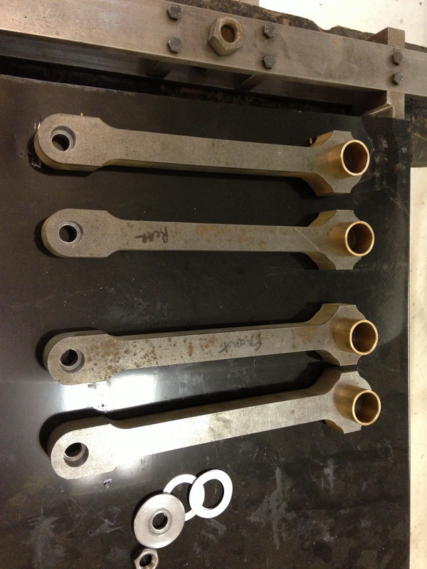 I HAVE TO SIZE ONE BUSHING HOLE AND PRESS IN THE BUSHING THAT I HAD TO ORDER, AND THEN SHAPE THE SIDES OF EACH ROD AND THEN POLISH THEM AND THERE READY FOR FINAL ASSEMBLY. THEY ALL FIT AND IT STILL ROLLS SO MUST OF DONE SOMETHING RIGHT.