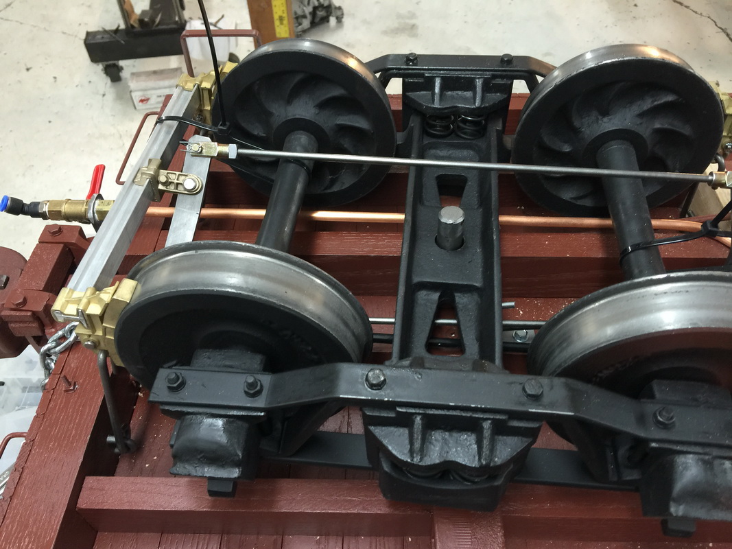 AS YOU CAN SEE WE HAVE PROGRESS ON THE AUTOMATIC AIR BRAKE SYSTEM ITS TRIAL AND ERROR RIGHT NOW AND WHEN WE GET IT ALL COMPLETED WE ARE GOING TO SELL A KIT THAT WILL INCLUDE ALL THE BRAKE PARTS TO DO A COMPLETE CAR.