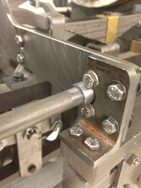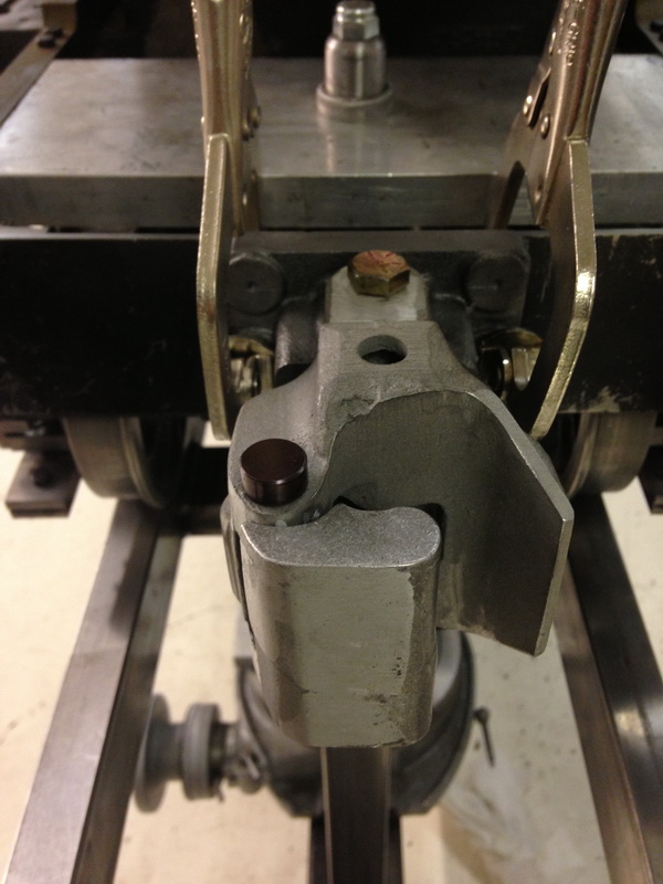 ROCKER BOXES ARE FINALLY DONE AND LEVEL AND CORRECTED HEIGHT FOR SCALE AND TURNED THE SHAFT DOWN TO 1/2 TO MAKE THE OUTER ARM LOOK MORE PROTOTYPE. COUPLER IS STARTED AND MOUNT IS MACHINED, FRONT TRUCK SUPPORT FINALLY GOT ALL THE BOLTS IT NEEDED. WE ARE CLOSE TO RUNNING ON AIR ONLY MISSING TWO PARTS. I REMADE THE JOHNSON BAR REVERSE ROD TO THE CORRECTED SCALE HEIGHT AND MADE IT A CLAMP ON INSTEAD OF A WELD ON.